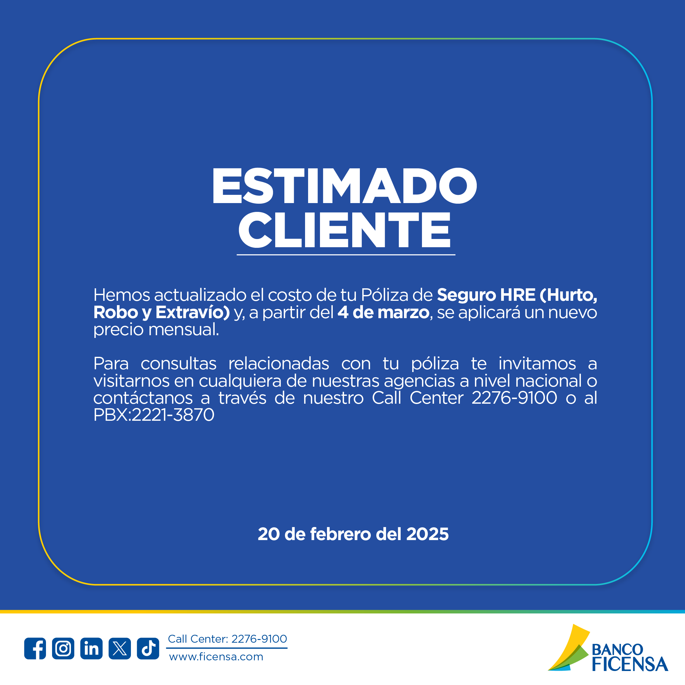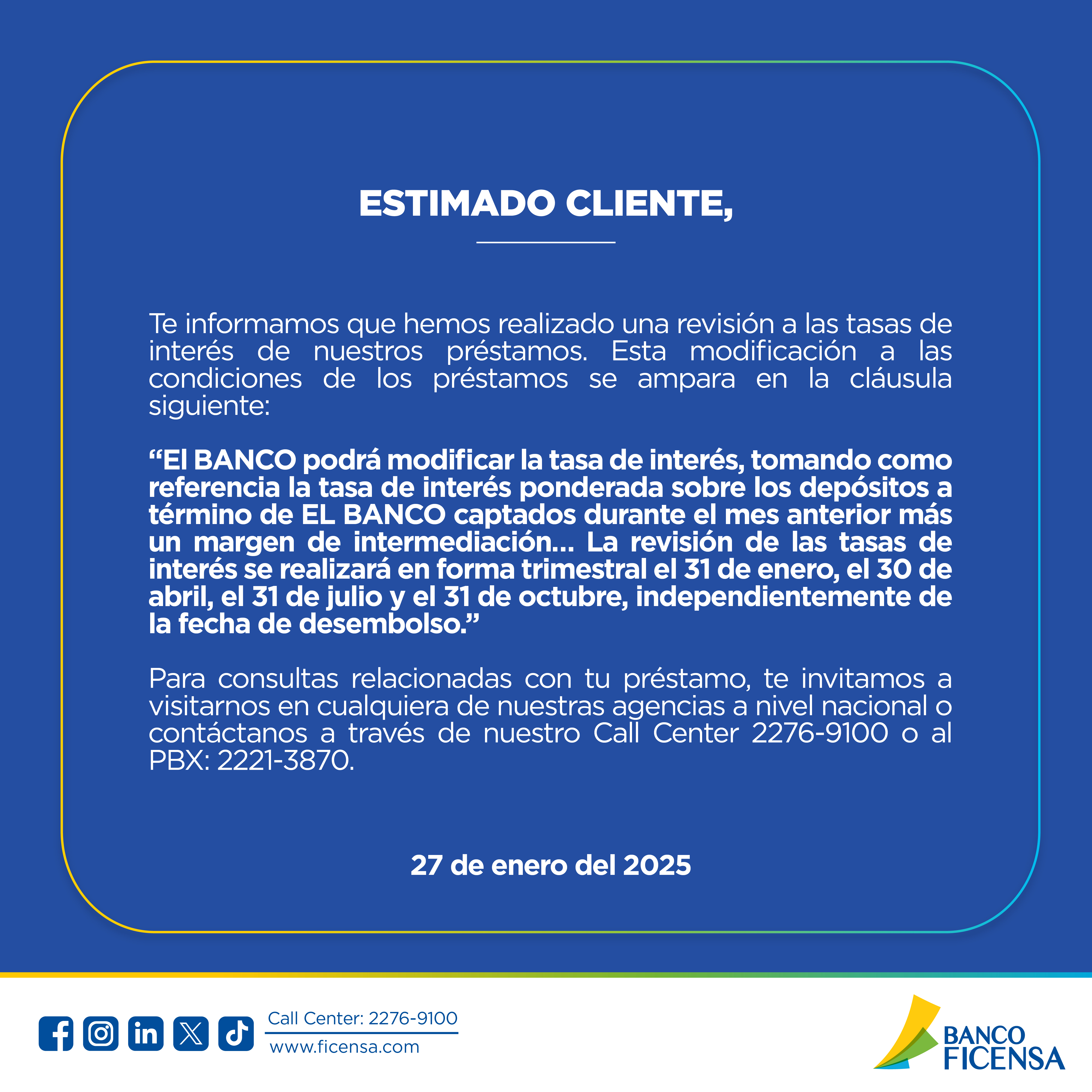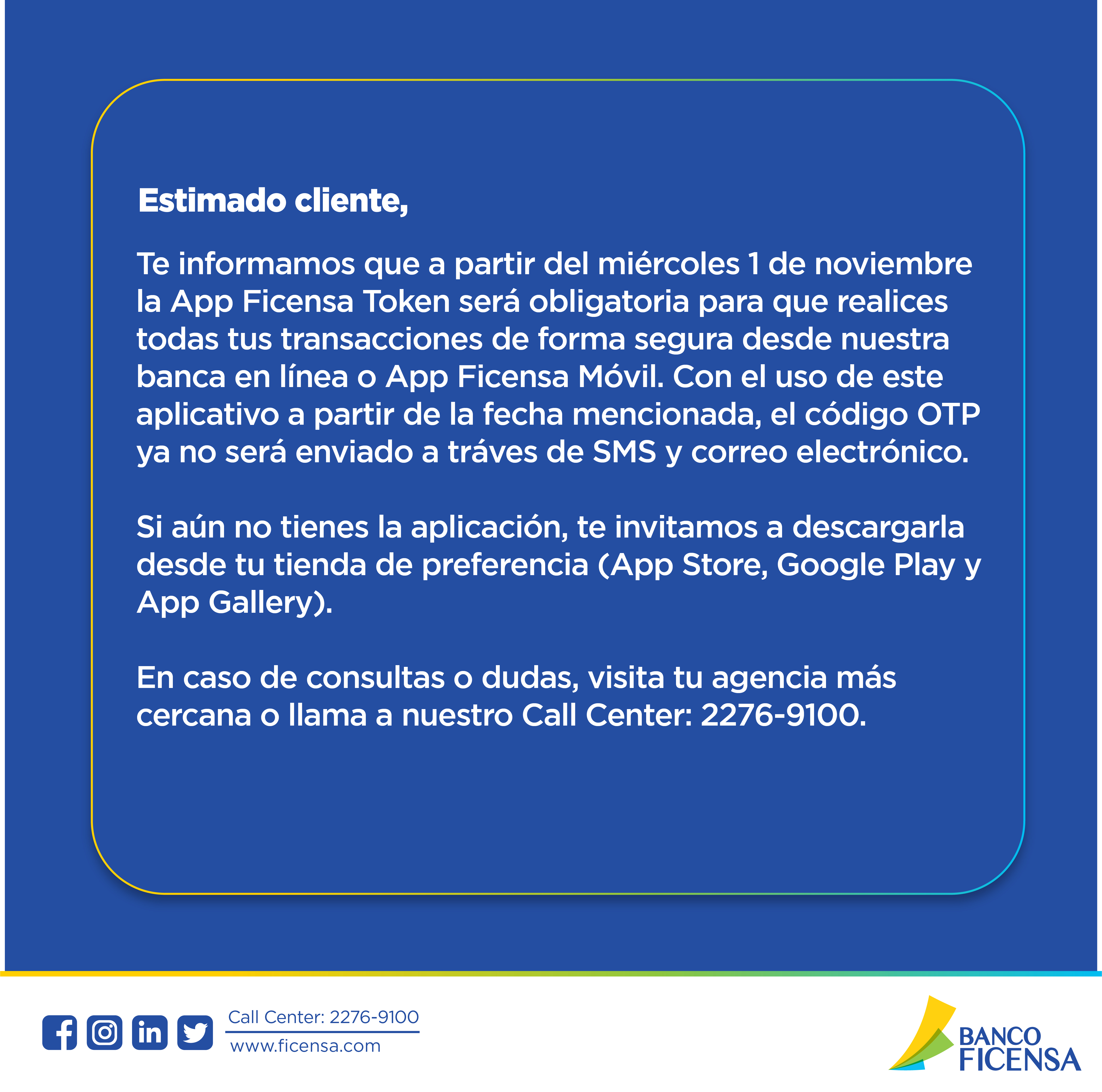 Banco Ficensa es una institución innovadora, que excedió las expectativas de excelencia exigidas por los clientes debido a una administración prudente y profesional.
